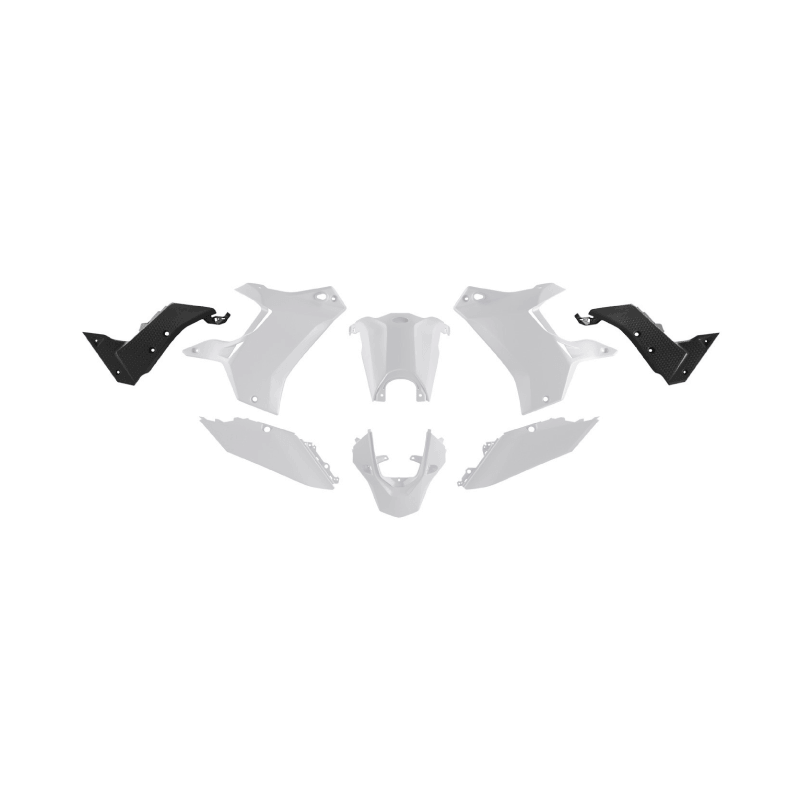 Kit de plásticos fabricado en tecnopolímero diseñado para maximizar el atractivo estético y resistir al impacto, con un diseño revisado para garantizar una ergonomía óptima off-road y dar a la moto un aspecto más racing.